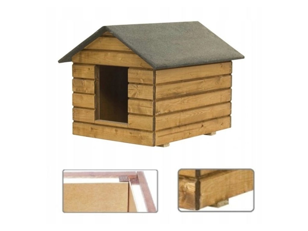Naše zateplená psí bouda MM je perfektní útočiště pro vašeho malého mazlíčka. Vyrobená z vysoce kvalitního borovicového dřeva, spojeného pero-drážkou, s prkny o tloušťce 18-20 mm, zajišťuje trvanlivost a odolnost vůči povětrnostním vlivům. Bitumenová střecha účinně chrání interiér před deštěm a sněhem. Interiér boudy je zateplený 2cm vrstvou polystyrenu a chráněn 3mm HDF deskou, což poskytuje teplo a pohodlí. Vyvýšená podlaha na trámech zajišťuje suchost a tepelnou izolaci. Bouda je dodávána jako stavebnice s jednoduchými komponenty pro snadnou montáž, včetně šroubů a jasných instrukcí. Celá konstrukce je natřena metodou ponoru, což chrání před vlhkostí a udržuje boudu v dobrém stavu, standardně v teakové barvě.