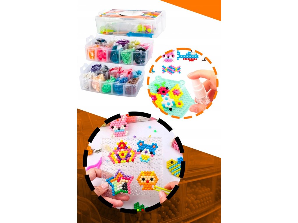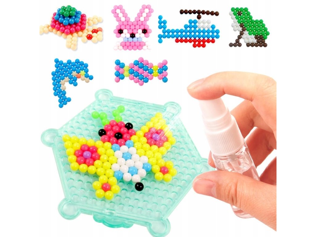Uspořádejte libovolný tvar, postříkejte vodou a sledujte, jak se korálky magicky spojují! A to vše bez použití lepidla