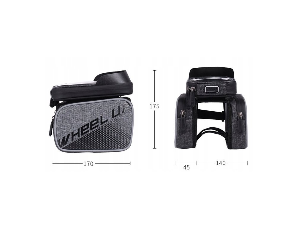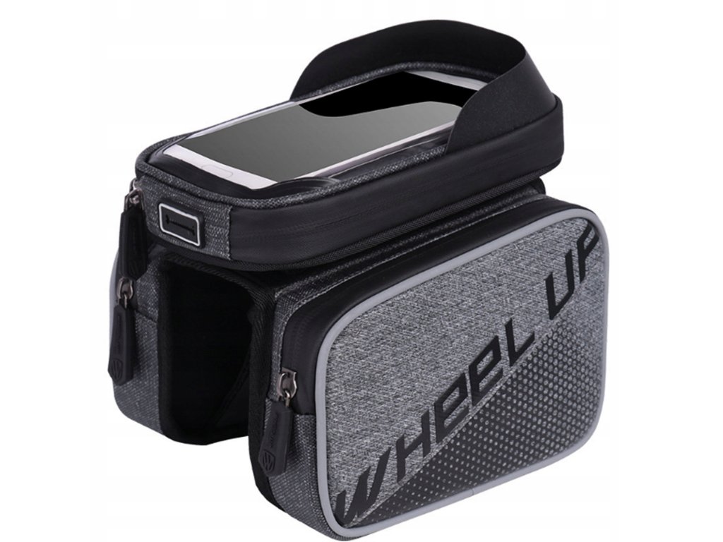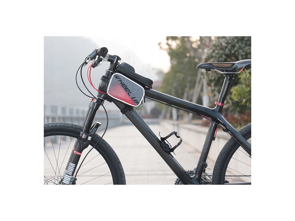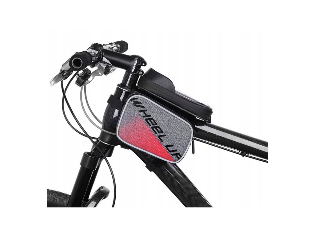 Taška je připevněna k rámu kola dvěma popruhy s extrémně odolným suchým zipem. Kryt telefonu se zapíná na zip a má dvě boční kapsy na pevný suchý zip.