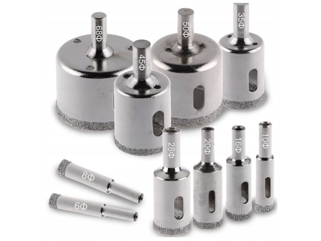 Diamantové děrové pily na dlaždice, sklo a keramiku 10 ks 6 - 68 mm největší sada