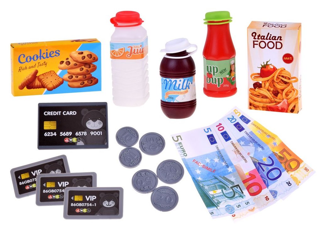 Po vložení baterie hračka vydává zvuky jako ve skutečných pokladnách, přetažení karty je navíc zvukově signalizováno a skener hraje veselou melodii.