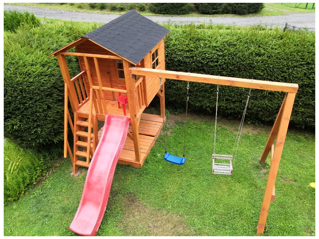 Snadná montáž: domeček se dodává v polosloženém stavu.