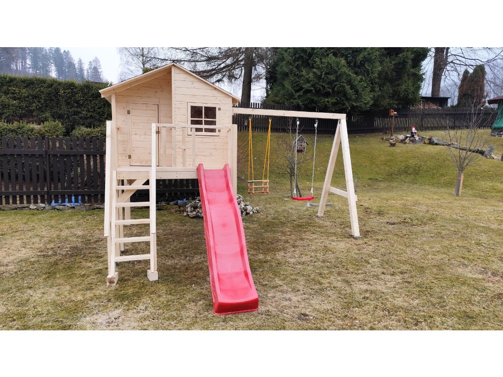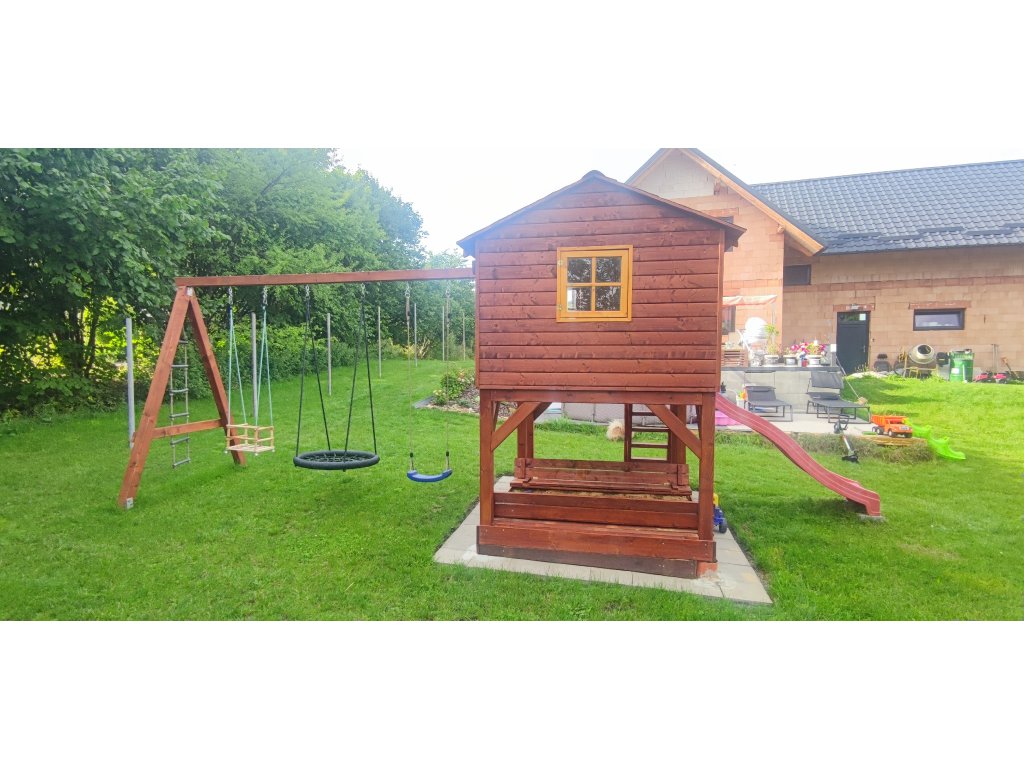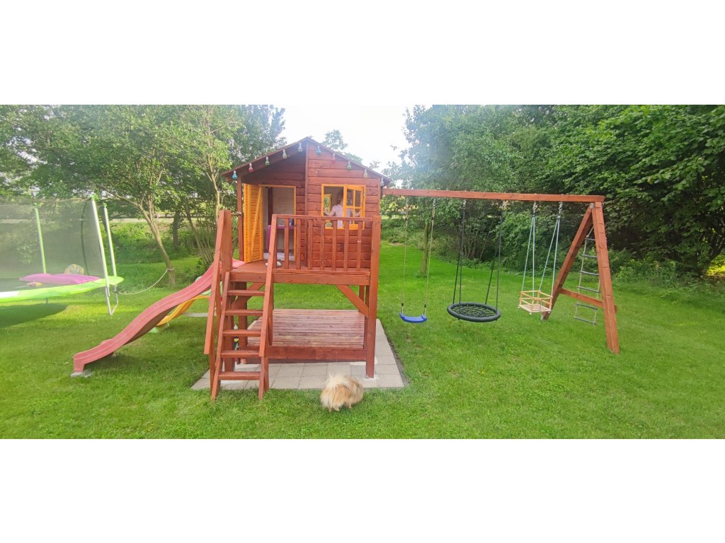 Rozměr domku s terasou 230x178 cm.