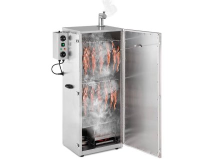 Profesionální elektrická udírna s objemem 147 litrů a 8 nerezovými rošty pro studené, teplé i horké uzení masa, ryb, sýrů a zeleniny. S výkonem 1000W, regulací teploty 0-135°C,...
