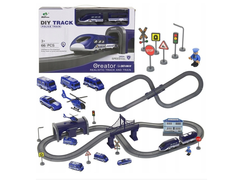 Elektrický Vlak Trať Policie 4 Vozy - Policejní Vláčkodráha s 66 Díly