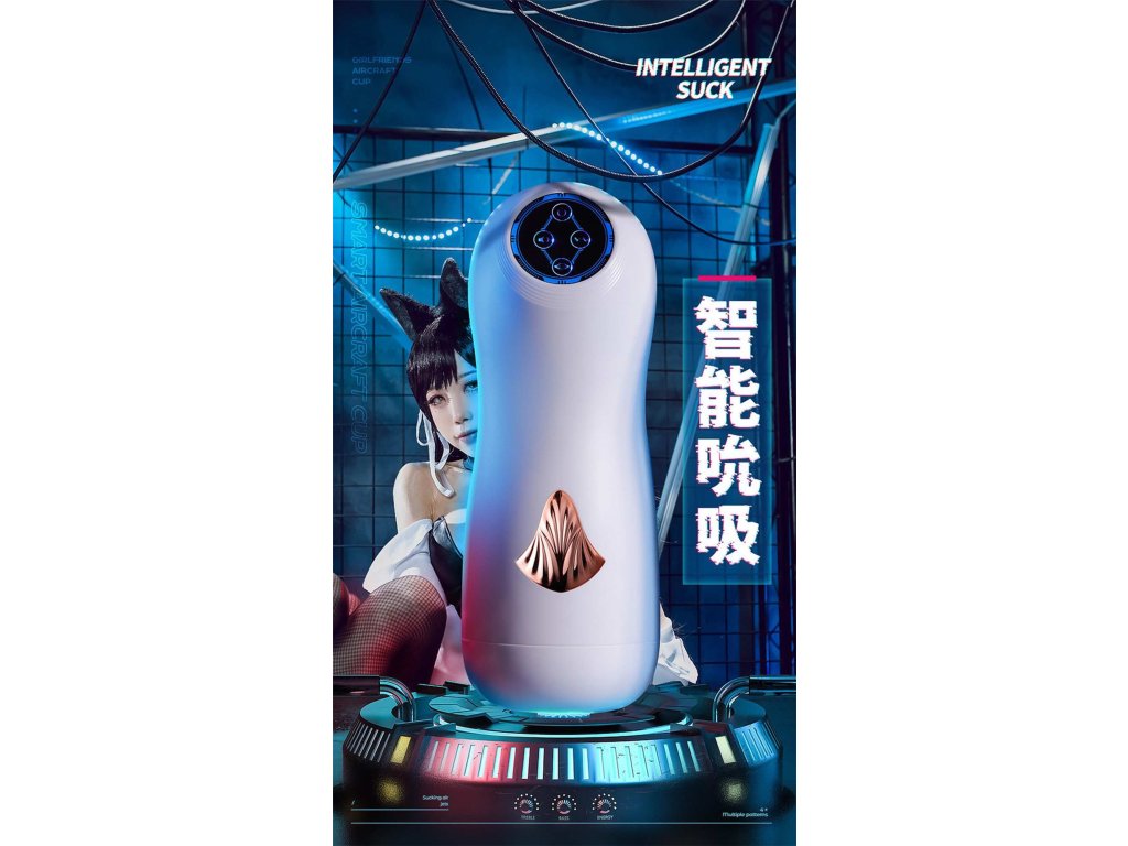 INTERAKTIVNÍ MASTURBÁTOR S HLASEM - 8 VIBRACÍ + 5 SÁNÍ, AUTOMATICKÝ