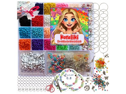 Objevte kreativní svět výroby šperků s kompletní sadou 72 barevných korálků obsahující kruhové korálky, ozdobné přívěsky a korálky v různých tvarech (kytičky, motýlci, srdíčka)...