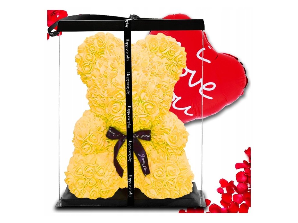 Luxusní LED medvídek z růží 25 cm