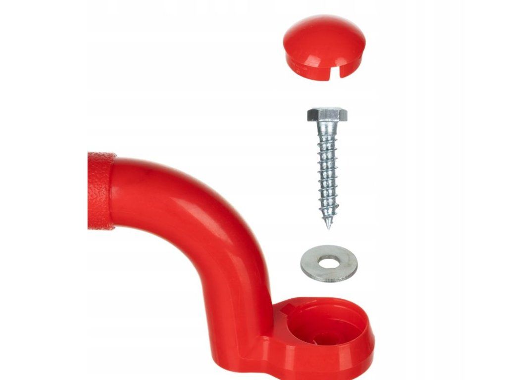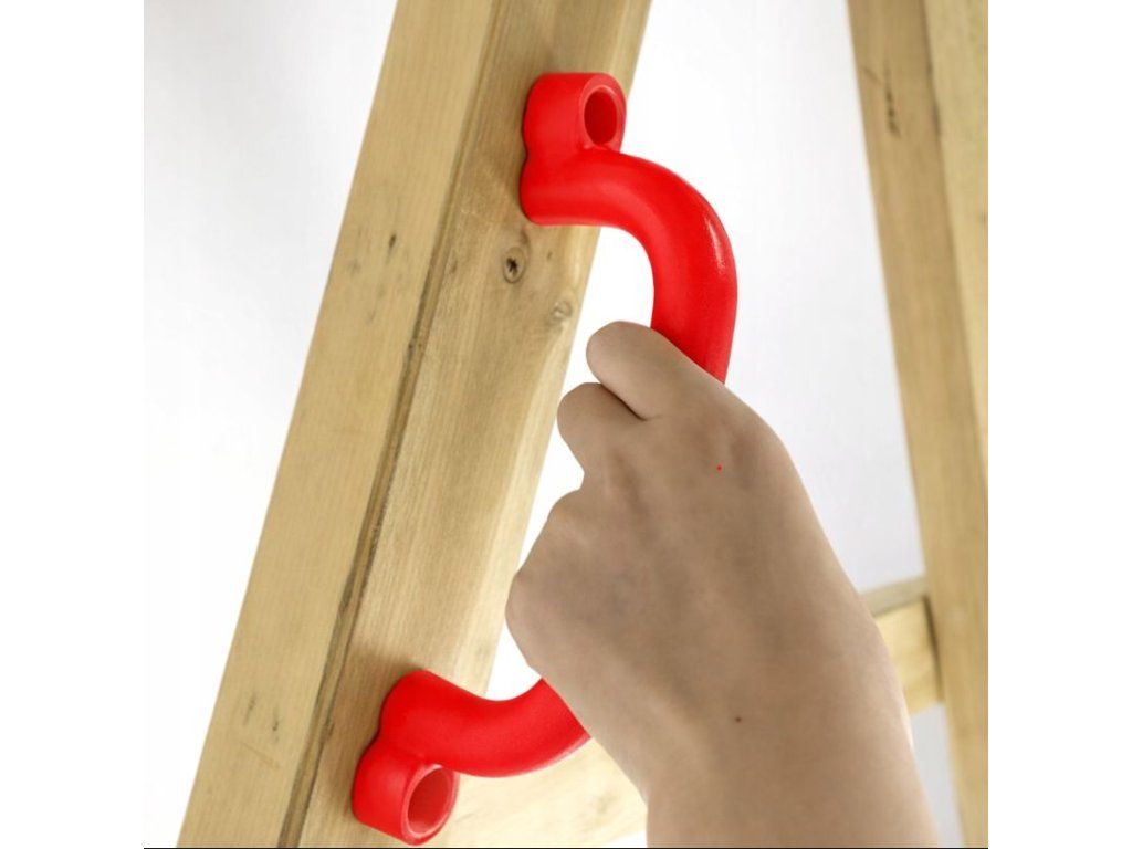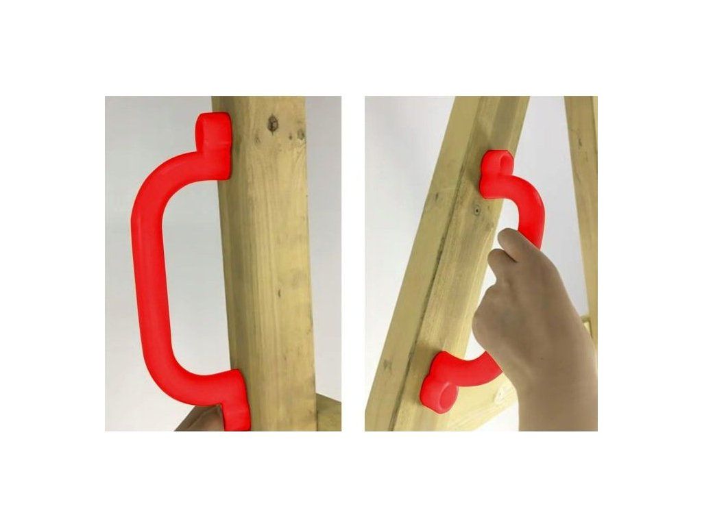 Bezpečnostní madlo je nezbytným prvkem pro každé dětské hřiště, kde zajišťuje bezpečnost a pohodlí při hraní. Tato rukojeť pro houpačky v červené barvě je vyrobena z odolného plastu, který odolává povětrnostním vlivům, UV záření a každodennímu používání. Ergonomický design madla na prolézačku umožňuje snadné uchopení malýma rukama, což snižuje riziko pádů a úrazů na dřevěných konstrukcích, jako jsou prolézačky, houpačky nebo lezecké stěny.