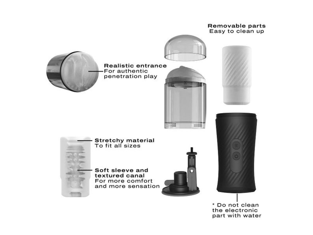 Jeho princip je založen na ⚡ automatickém a pravidelném pohybu tam a zpět pro skutečně realistický zážitek. Silná přísavka umožňuje připevnění k jakémukoli hladkému a rovnému povrchu. Po odejmutí přísavky se Thrust Blow promění v tradiční masturbátor.
