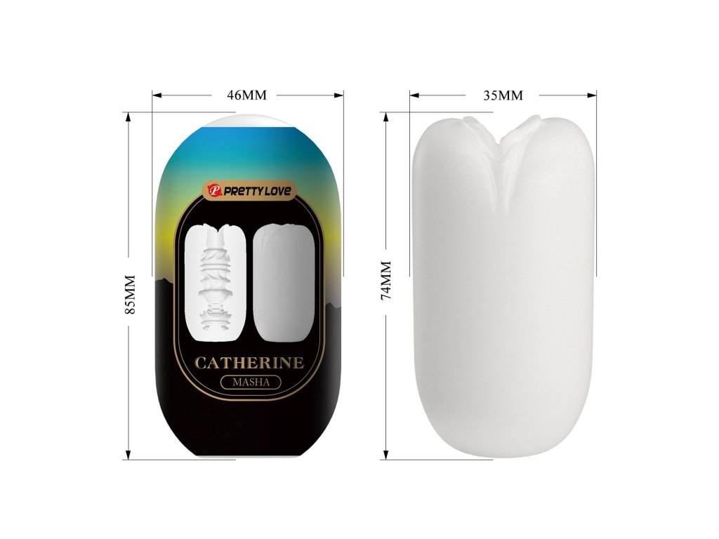 Objevte inovativní masturbační návlek Catherine Máša od značky PRETTY LOVE (Krásná Láska), který je připraven vás hýčkat a dovést k silnému orgasmu! Tento revoluční masturbátor ve tvaru vajíčka s jemně stimulujícími texturami nabízí zcela nový zážitek díky duální vnitřní struktuře a superflexibilnímu materiálu bez ftalátů.