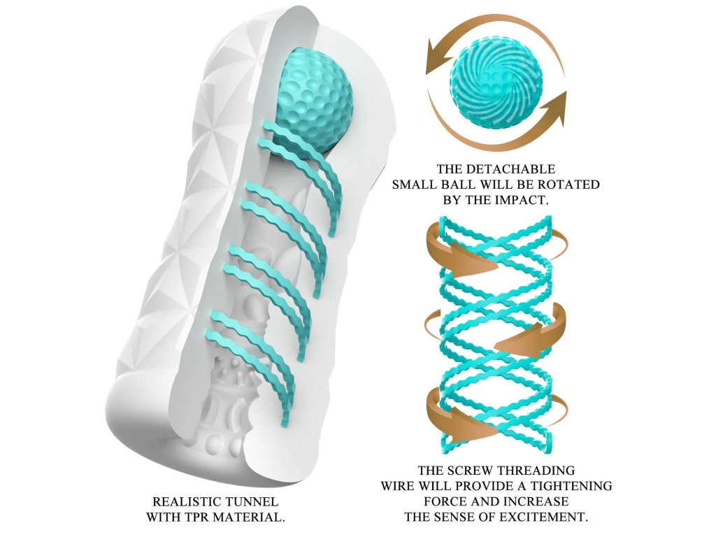 Unikátní mechanický systém s rotující spirálou uvnitř masturbátoru se automaticky otáčí během penetrace, zatímco stimulační kulička nahoře cíleně dráždí specifické citlivé body vašeho penisu. Tato kombinace rotace a bodové stimulace vytváří intenzivní a dynamickou masáž, kterou jste ještě nezažili!