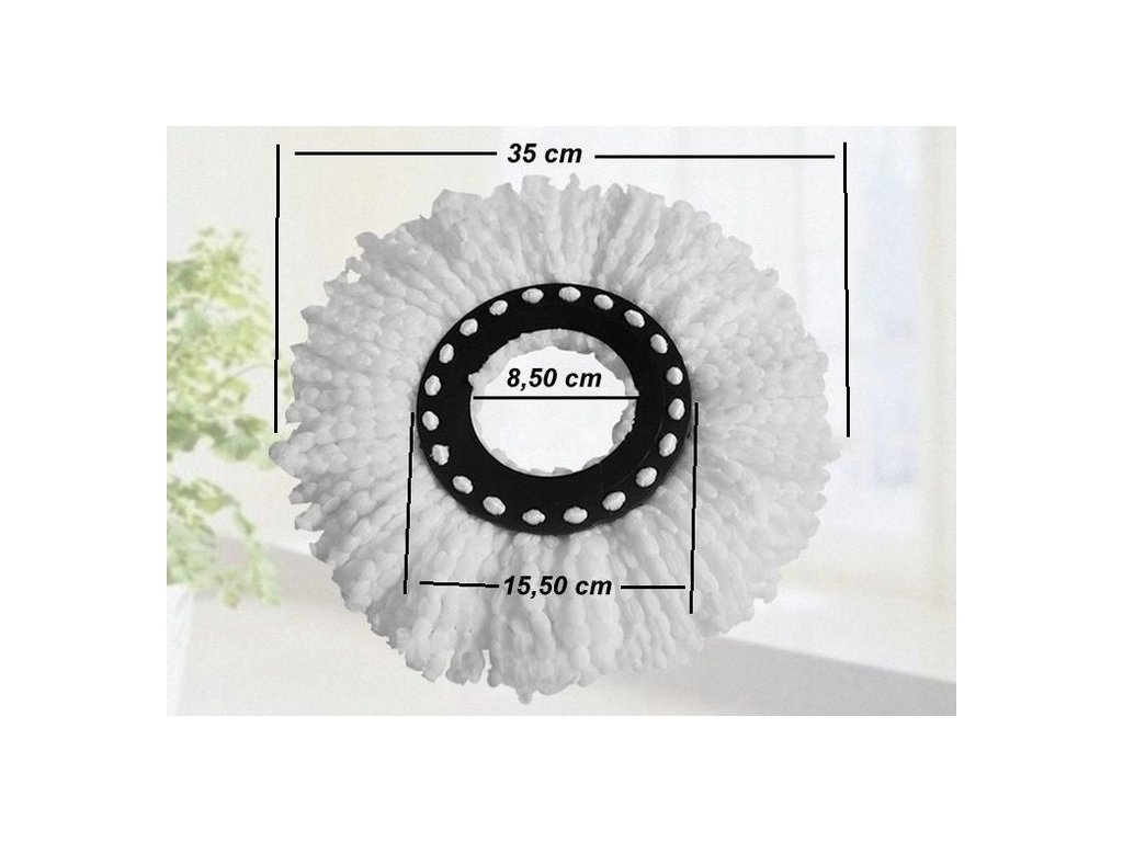 Univerzální náhradní textilní kotouč s extra dlouhými třásněmi z mikroaktivních vláken pro rotační mopy 360° SPIN TURBO a většinu rotačních mopů. Vysoce absorbční, pratelný v...