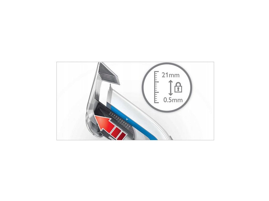 Stačí vybrat a uzamknout požadované nastavení délky. Nastavitelný hřeben umožňuje nastavit délku od 3 do 21 mm. Rozdíl mezi postupnými nastaveními je přesně 2 mm. Můžete také sejmout nástavec a vlasy krátce zastřihnout na délku 0,5 mm.