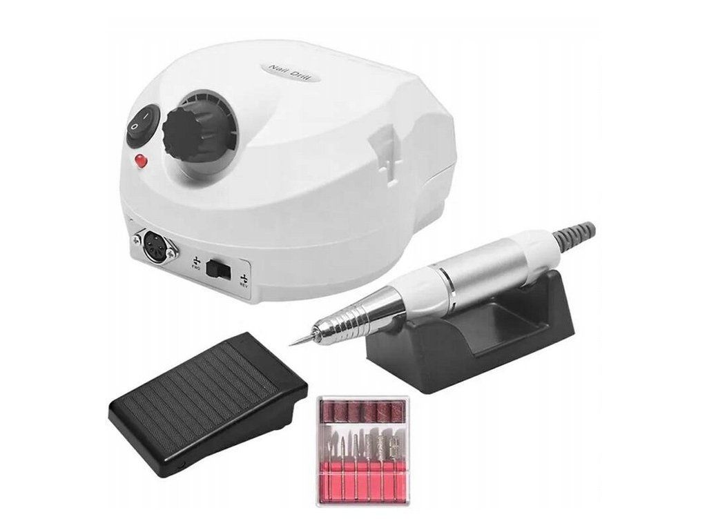 Výkonná bruska s 12 nástavci pro kompletní úpravy nehtů – od odstranění gelu a akrylu po finální leštění.