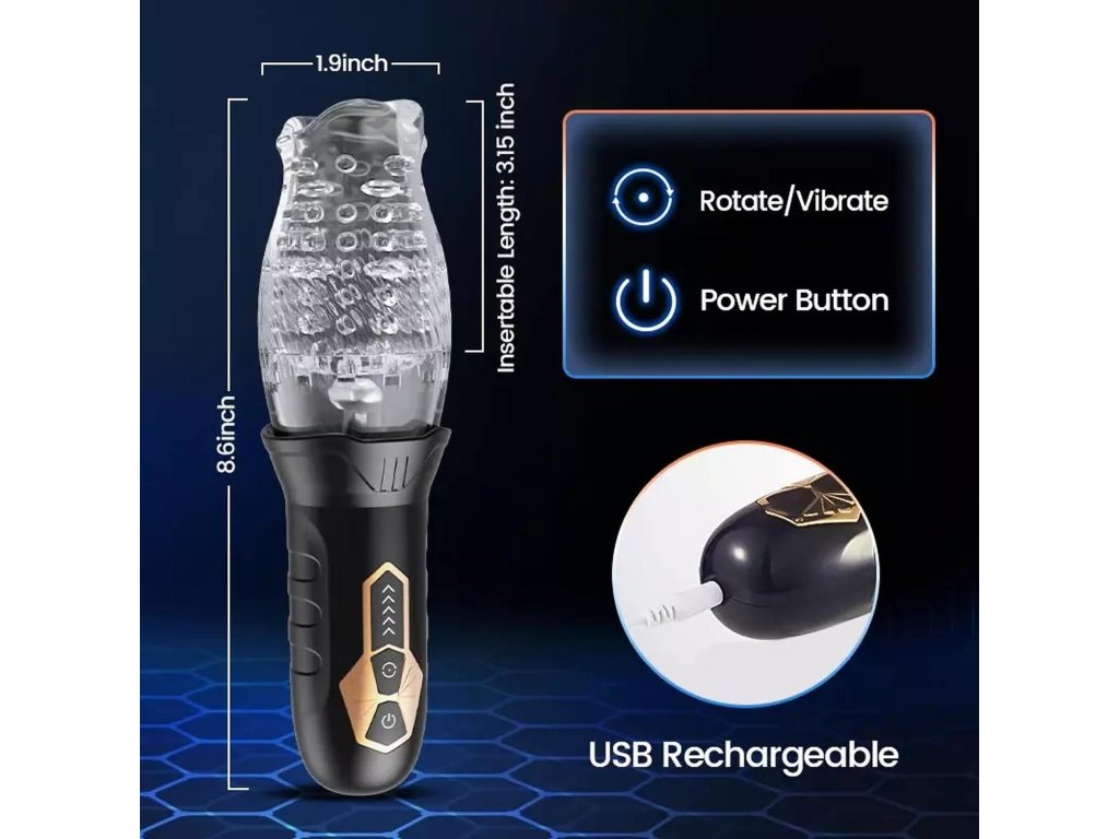 ROTAČNÍ A VIBRAČNÍ MASTURBÁTOR 9+9+9 REŽIMŮ - USB NABÍJECÍ