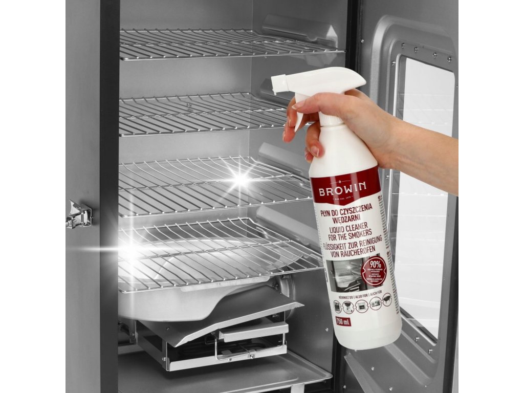 Tekutina dokonale vyčistí vaši zahradní nebo balkonovou udírnu i po intenzivním používání, stejně jako vaši troubu, gril, krb, kamna nebo topeniště. 🏠