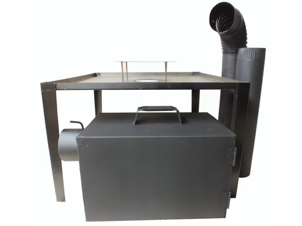 Kompletní sada topeniště k udírně 40x30x30 cm včetně stojanu (nohy 40 cm, 71x71 cm), roštu, kouřového kolena, dvou rour a difuzéru. Ideální pro domácí uzení masa,...