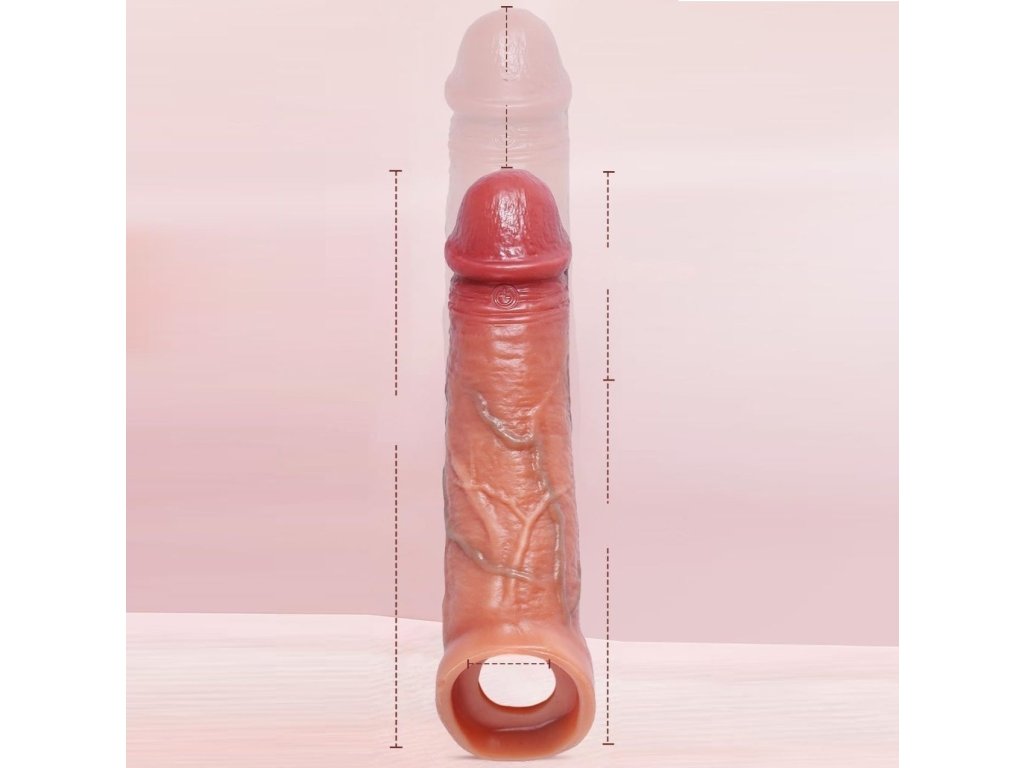 Vibrační nástavec na penis - Prodloužení +6cm, smart aplikace, 9 funkcí