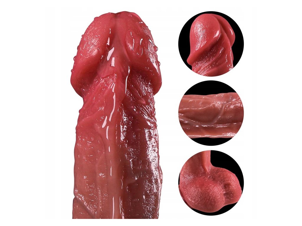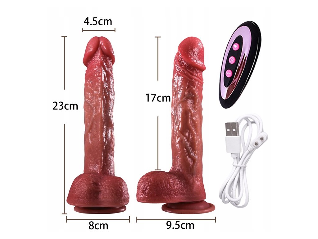 VYHŘÍVANÉ REALISTICKÉ DILDO S PŘÍSAVKOU 23 CM – 3 režimy zasouvání, 9 vibrací, dálkové ovládání, IPX6