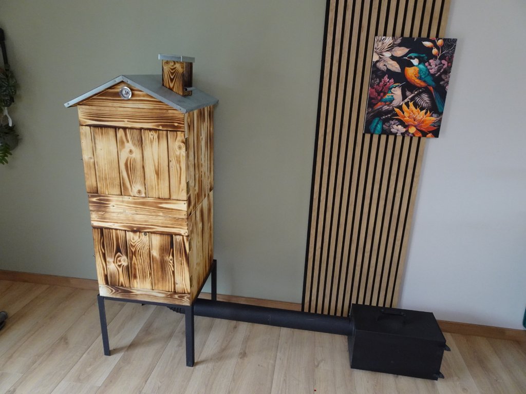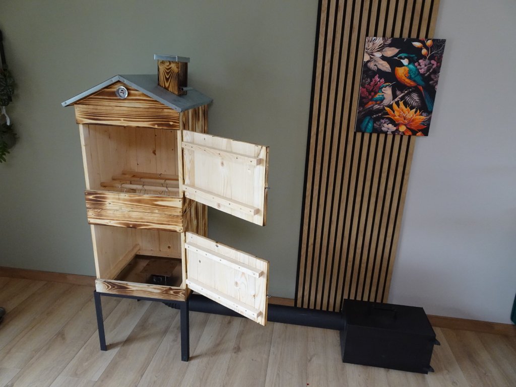 🌟 Profesionální dřevěná udírna vyrobená z kvalitních skandinávských smrkových desek třídy AB (fasádní desky) s pero-drážkovým spojem pro maximální těsnost. Kompletní set obsahuje vše potřebné pro okamžité zahájení uzení - velká kamna, komín, teploměr, háčky a další příslušenství.